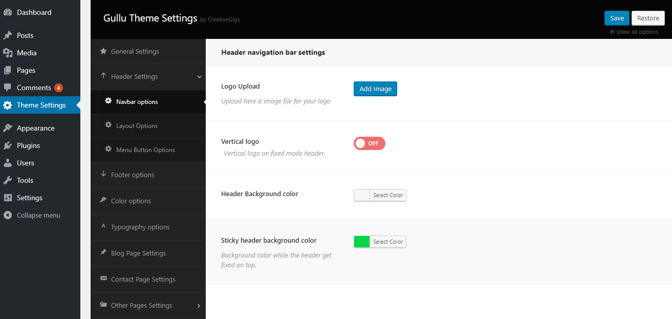 Header Settings Estimated reading: 1 minute 219 views In the Header settings section, you will get a lot of header customization options. In this section, you can change the logo and set the menu button, navigation bar settings etc.